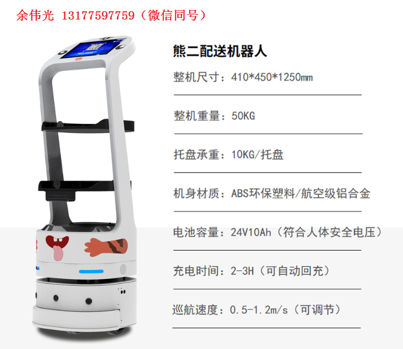 智能配送机器人 详细信息 智能配送机器人 江西太空机器人科技有限公司于是江西省鹰潭市创办,由来 自哈工大、浙江大学、同济大学等院校的博士和硕士为技术班底组建而成,核心技术团队有近7年的 服务机器人开发和应用经验;生产管理人员均有十余年电子电气工厂相关工作经历。